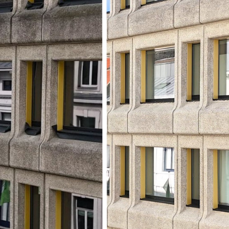 Nous sommes fiers de présenter l’un de nos récents projets, où nous avons revitalisé la façade d’un bâtiment en ciment poreux au cœur de Bruxelles.